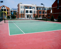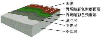 這是一種現(xiàn)場澆鋪用刮板制作在瀝青混凝土上或鋼盤混凝土結(jié)構(gòu)地面上的新型材,其工藝主要分為找平結(jié)合層、加強(qiáng)層、耐磨層等多層做法,還有含膠粒的多層做法這種面層材料及工藝的優(yōu)點是平整度高、表面硬度高、耐磨、抗曬、色澤鮮艷、使用壽命長便于管理和維修。這種面層材質(zhì)穩(wěn)定的網(wǎng)球場近年來已開始在世界各地普遍采用,管它球速稍快,較之其它類型球場,球的彈跳平衡,球員場上跑動舒服,是一種既可供娛樂打球也可用做正規(guī)比賽的高檔次網(wǎng)球場地